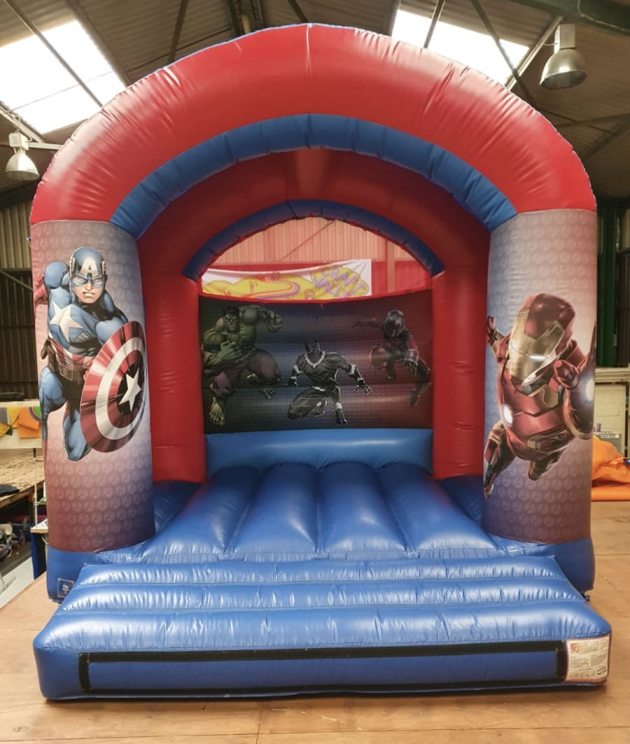 This is an awesomely cool, Marvels Bouncy Castle with vibrant colours and all of the 'all time' favourite Marvels characters on it, including Spiderman, Hulk, Ironman, Captain America, Black Pantha and Ant Man. This bouncy castle is ideal for any adventurous or marvels-mad child to celebrate a birthday or any other celebration! 12" x 12" It comes with inflation fan, extension cable, anchor stakes or sand bags, safety mat and fitted shower cover.