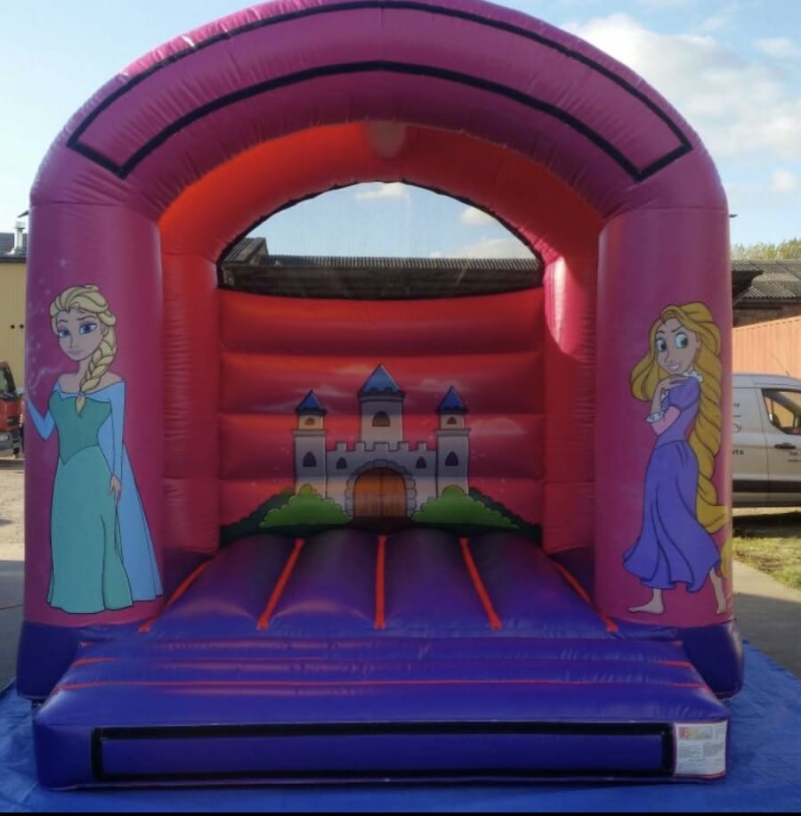 A very popular bouncy castle for girls with its Princess- Cinderella theme. Suitable for children up to 12 years of age, and will hold 6 to 8 kids at any one time depending on age and height. The Princess bouncy castle comes with inflation fan, extension cable, anchor stakes or sand bags, safety mat, and fitted shower cover. Please note this unit is 12.5 feet high. To accommodate it indoors, the ceiling must be 13 feet and over.