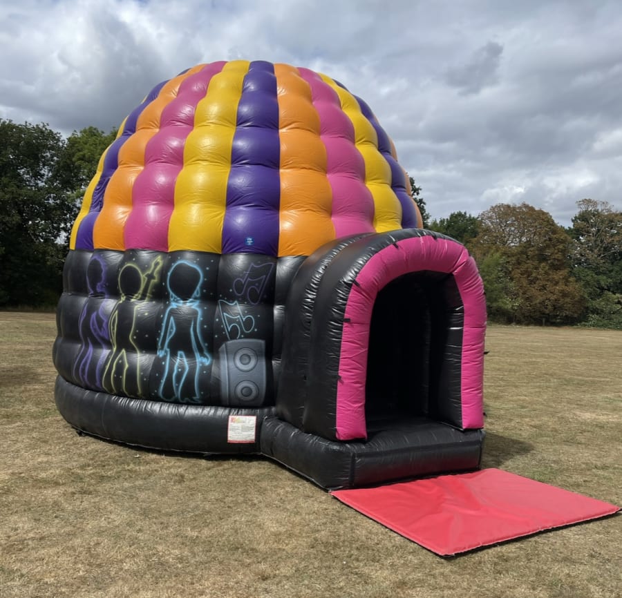 A fantastic inflatable that has music playing and disco lights flashing that will make any party a big hit. You have got to see it to believe it. Once inside the dome you would think you are at some night club. Suitable for all ages. Comes with inflation fan, extension lead, sand bags or stakes, safety mat, and of course the large speaker which can be connected to any blue tooth device, and disco lights.